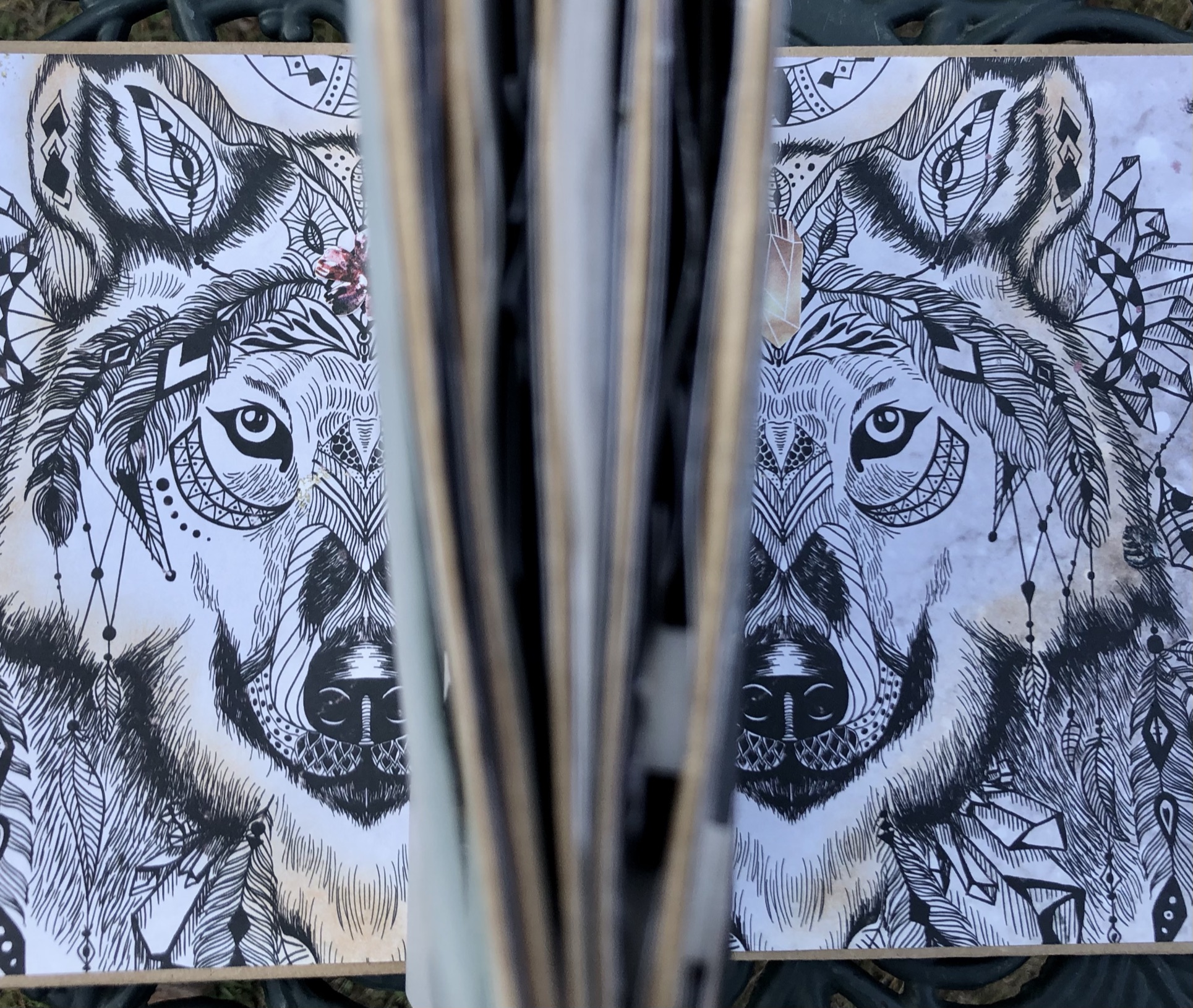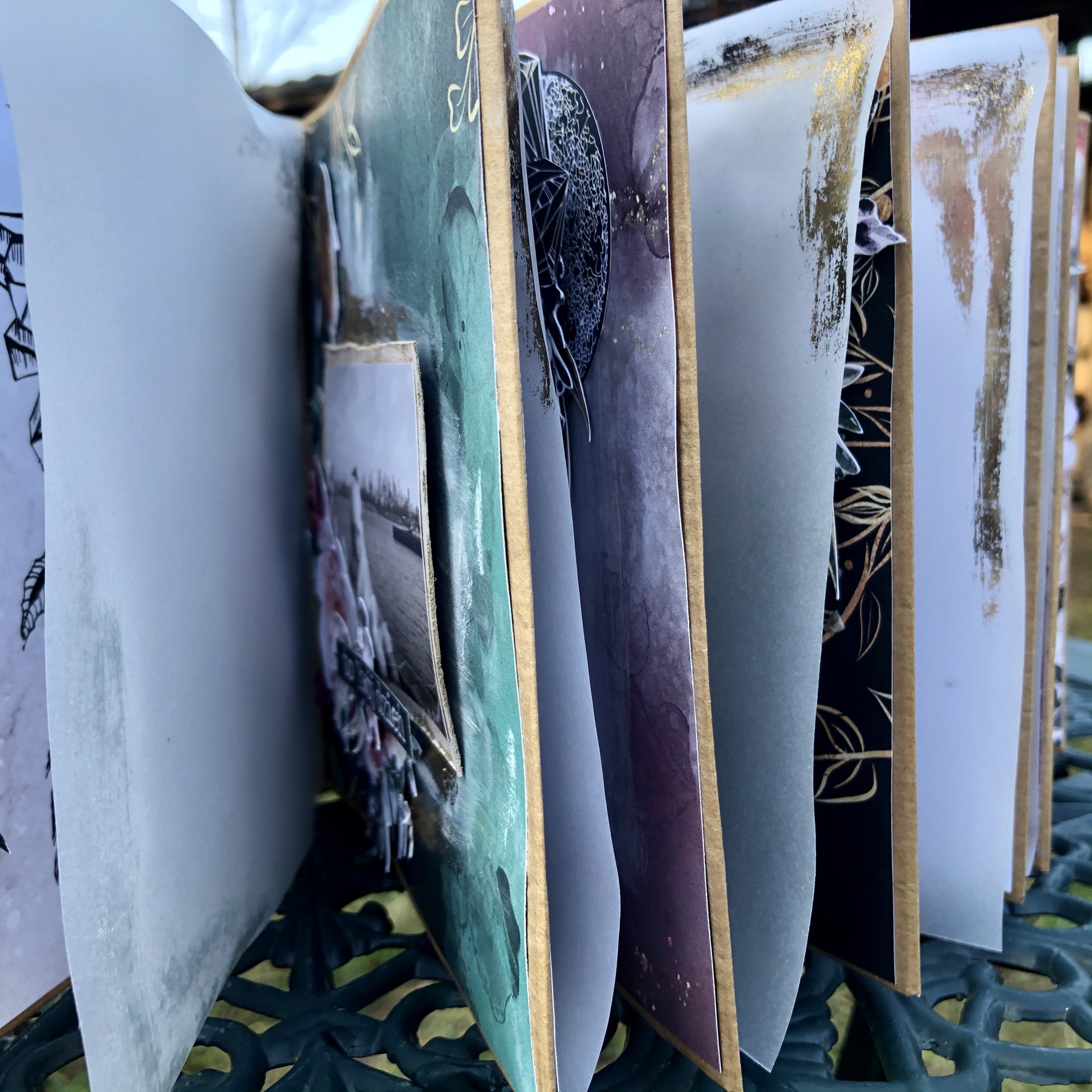 Album na bazie z torebek papierowych, z użyciem mediów.