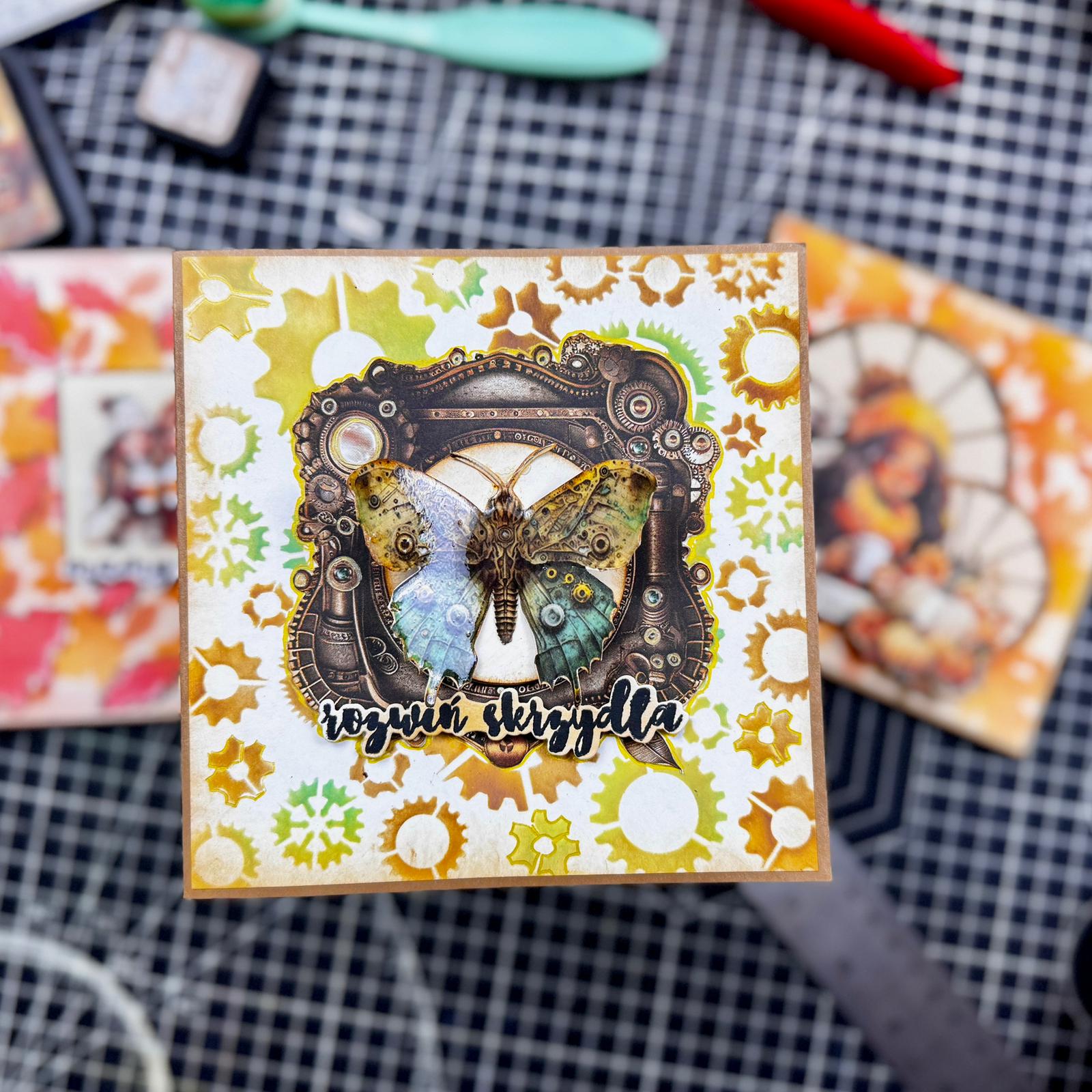 Dwuwarstwowa maska z motywem kół zębatych, która doda Twoim pracom industrialnego i steampunkowego charakteru. Dzięki efektowi głębi możesz tworzyć tła i kompozycje pełne mechanicznych detali, które świetnie sprawdzą się w męskich projektach, art journalu czy pracach mixed media.