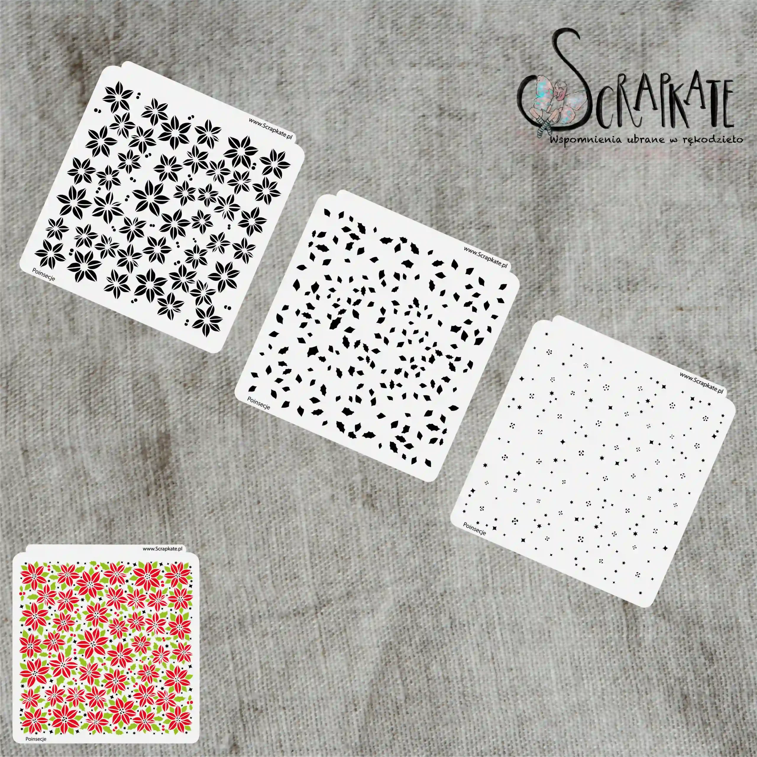 Stwórz wyjątkowe, świąteczne tła pełne głębi i detali dzięki maskom warstwowym Scrapkate – Poinsecje (3 warstwy). Ten projekt to połączenie subtelnych kształtów, drobnych akcentów i wyrazistych kwiatów, które po nałożeniu na siebie tworzą niezwykle efektowny, bogaty motyw bożonarodzeniowych poinsecji.